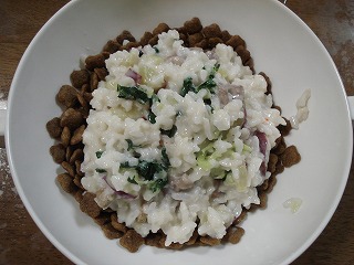 途中でフードとリゾットをかき混ぜたら