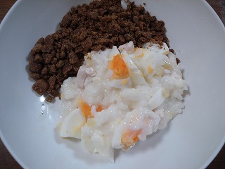 材料は、白米・卵・チーズ・鶏ササミ・さつまいも