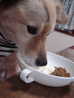 老犬用フードは、珍しく、私が仕事から帰ってくる前に