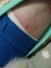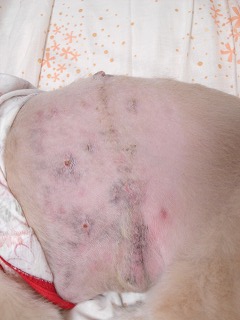 かぶれた跡かな?お腹が少し出血気味。