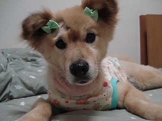 今日は手術から初めて、リボンを付けました。