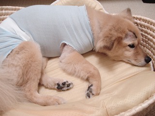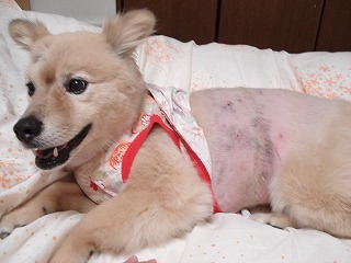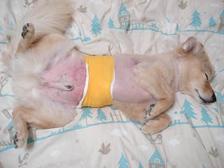 元気になってきて、後足でお腹をかくようになってしまって