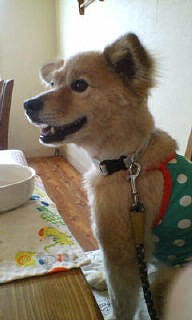 今日、お腹の部分だけ、バリカンで刈ってもらいました~