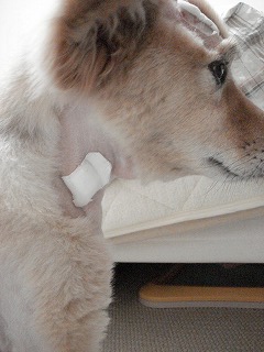 なので、あちこち、毛が刈られ、絆創膏だらけ。