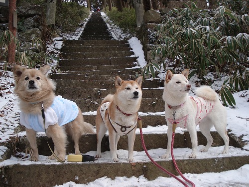 この階段、雪のせいで、凍っていて、けっこう急なのね。
