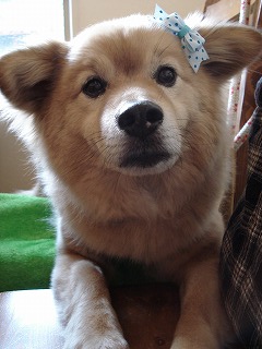 ブルーのリボンしても、なぜか女の子っぽいよね。