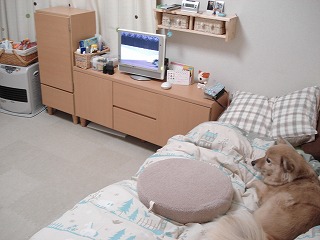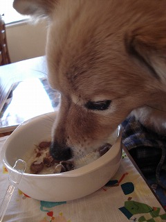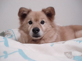 食べた後、私の太ももの上でご満悦のベルちゃま。