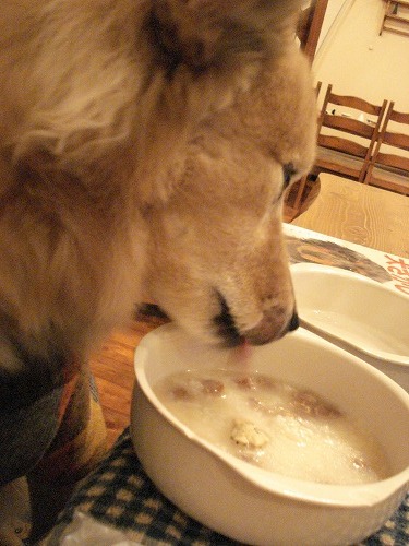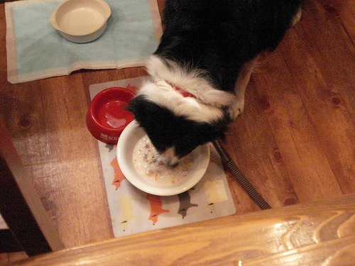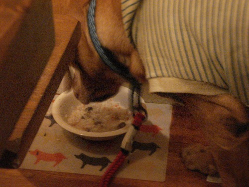 ベルは、大好きな砂肝リゾットを今日もたいらげました