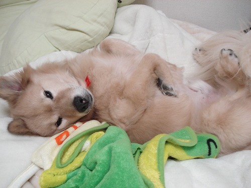 ヘソ天姿で、気持ち良さそうにYakoのベッドで寝ておりました。